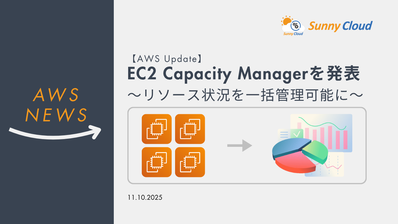 コラム 2025年11月07日 【UPDATE】Amazon EC2 Capacity Managerを発表 ~リソース状況を一括管理可能に~ 2025年10月、AWSから新たに発表された「Amazon EC2 Capaci