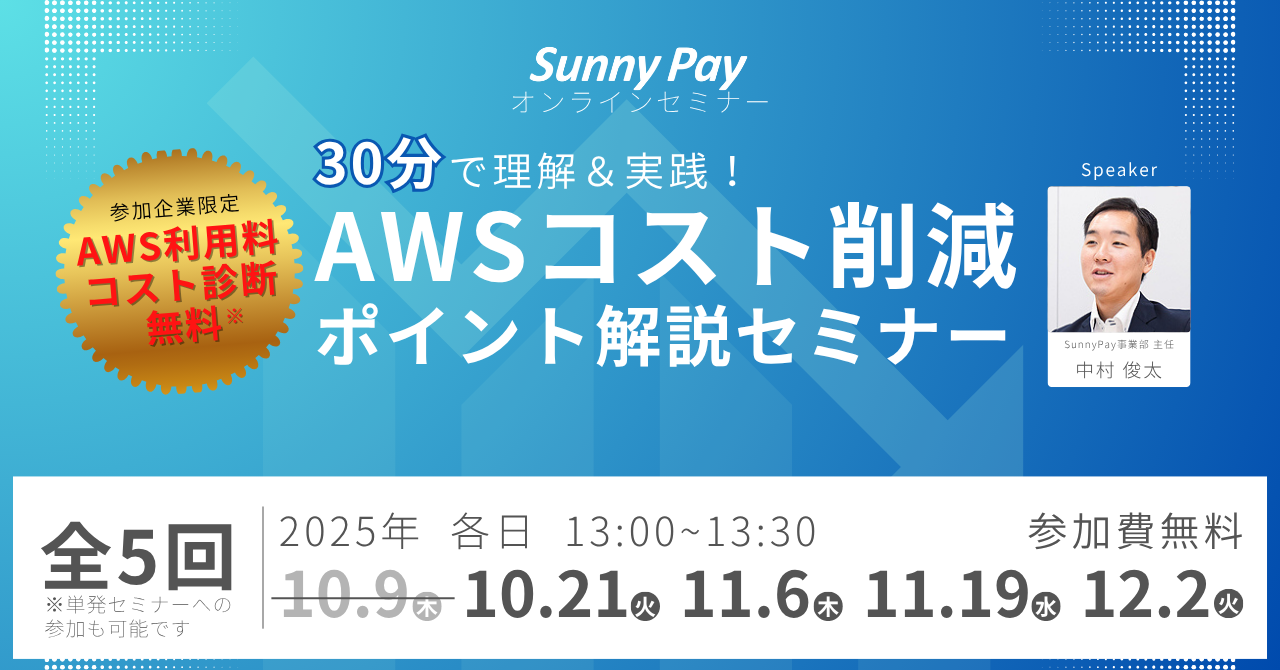 こんにちは、SunnyPay事業部の磯野です。 AWSを使い始めてしばらくすると