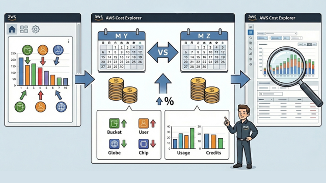 AWS Cost Explorer の Cost Comparison 機能は、「どこが変わったのか」を 直感的かつ迅速に把握するツールとして、月次コスト分析の負荷を大きく軽減します。FinOps やクラウドコストガバナンスの実務でも扱いやすく、関係者との共通理解にも役立ちます。