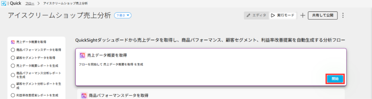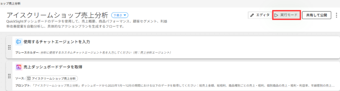 「アイスクリーム売上分析」というフローが出来上がりました。