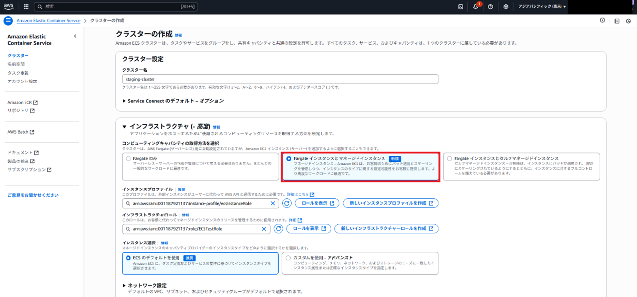 「Amazon ECS マネージドインスタンス」を利用したい場合は