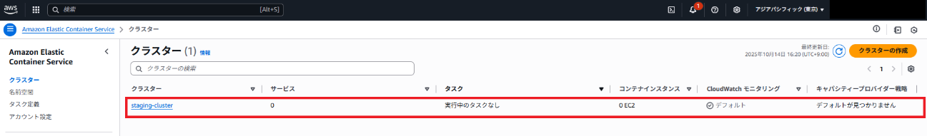 今回はデフォルトの「ECS デフォルトを使用」を選択しました。