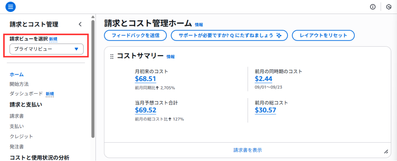 ページ中段にある Billing View セクションで「Create view(請求ビューを作成)」をクリック