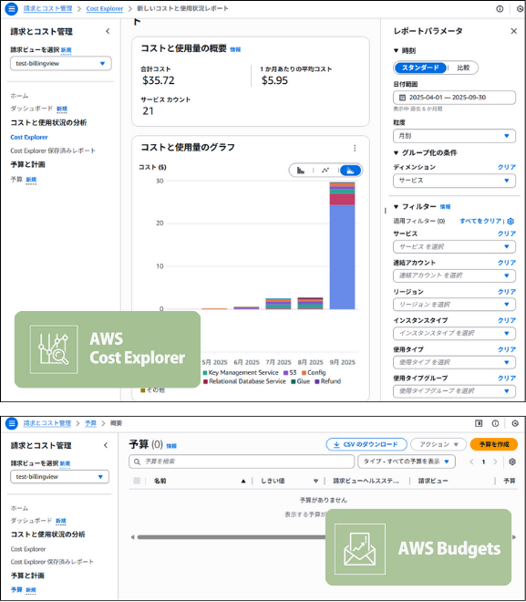 作成したBilling Viewは、Cost ExplorerやAWS Budgetsからすぐに参照できます。