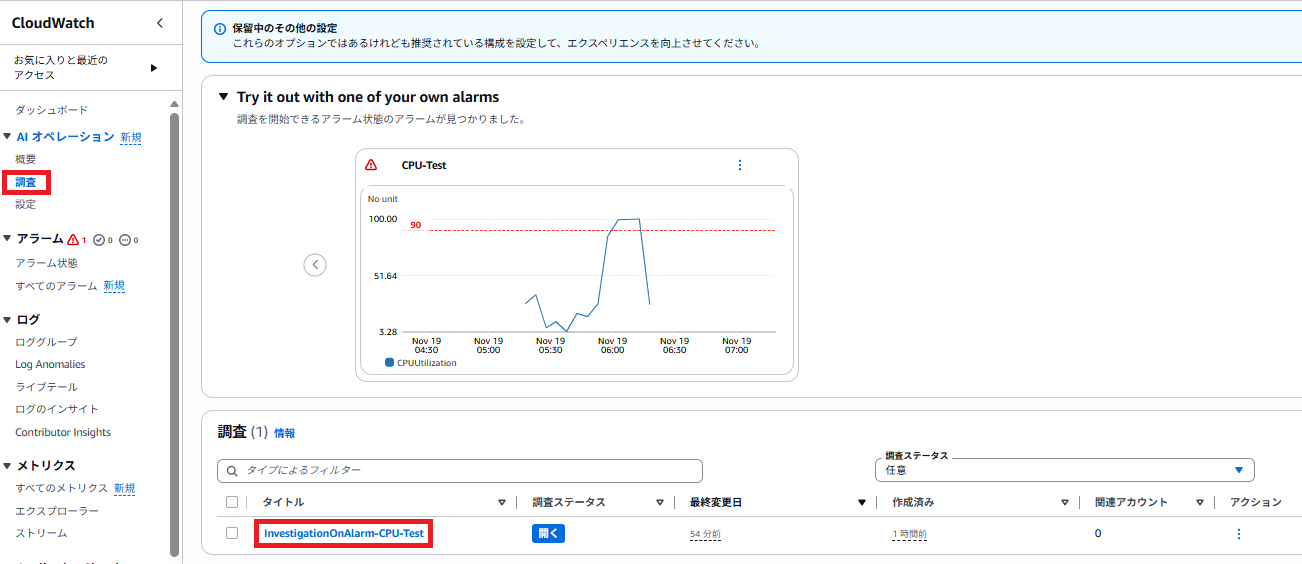 - アラーム名: InvestigationOnAlarm-CPU-Test