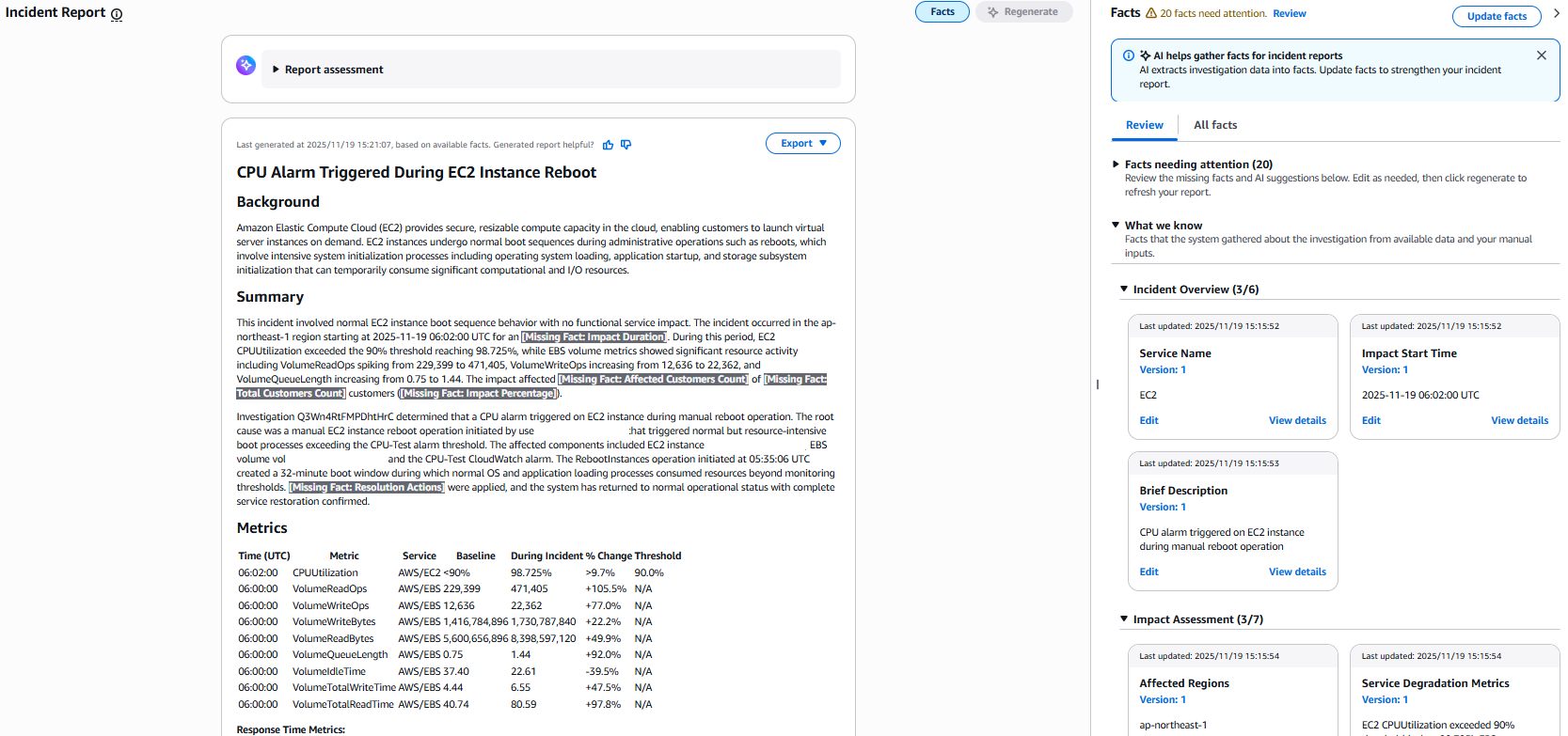 2025年10月22日、Amazon CloudWatchに新たな機能「インシデントレポート」が追加されました。この機能により、インシデント発生後の分析レポートが自動で生成されるようになり、運用チームの負担が大幅に軽減されます。