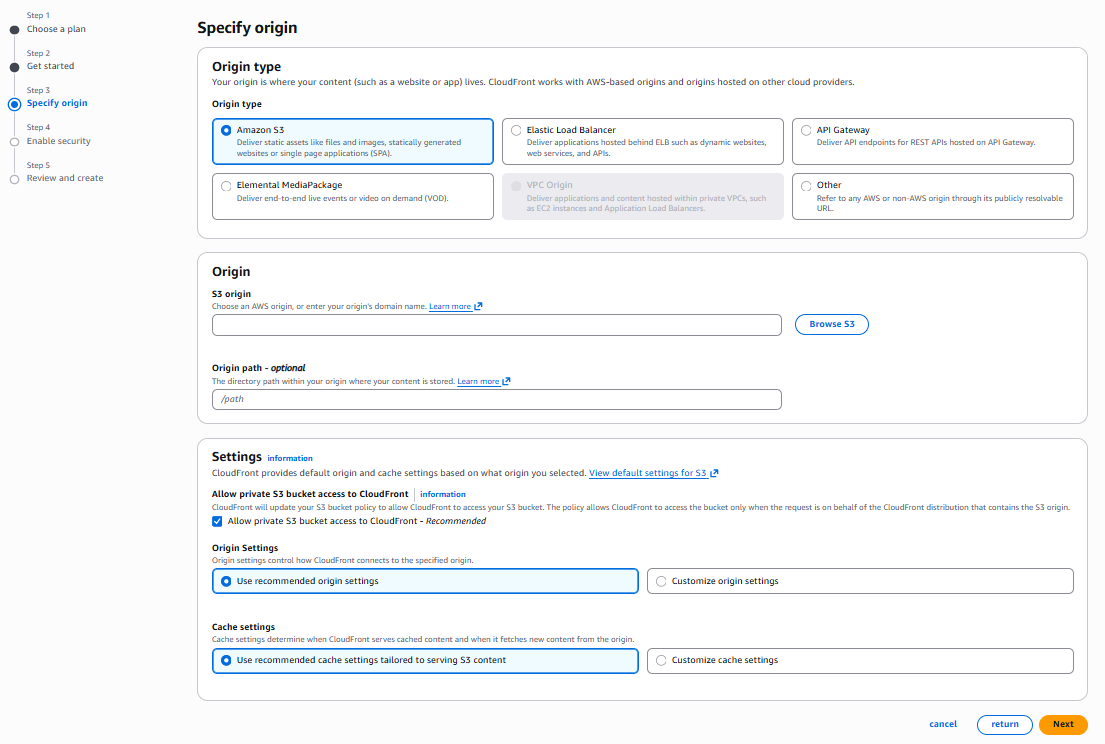 Free プランの場合、VPCをオリジンに指定することは不可