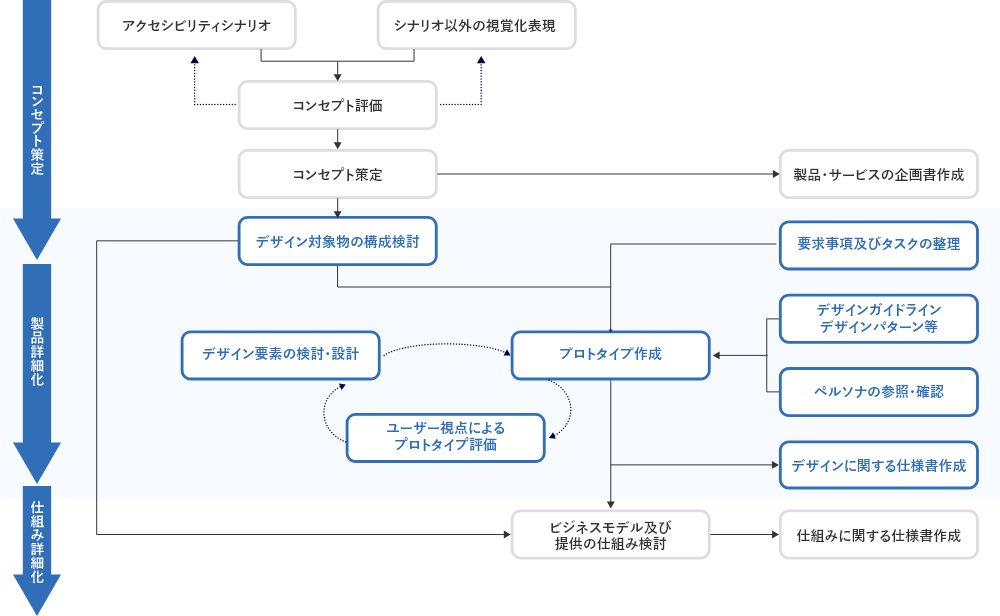 プロトタイプでの評価を繰り返しながら詳細度を高めていくプロセスを行い、お客様自身で自社ビジネスの解像度を上げていくプロセスを支援いたします。