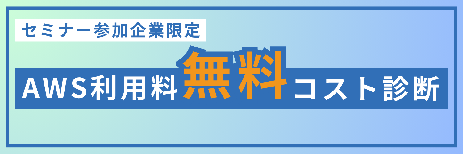 本セミナーにご参加いただいた企業さまには、先着5社限定で「AWS利用料コスト診断サービス」を特典としてご提供いたします。